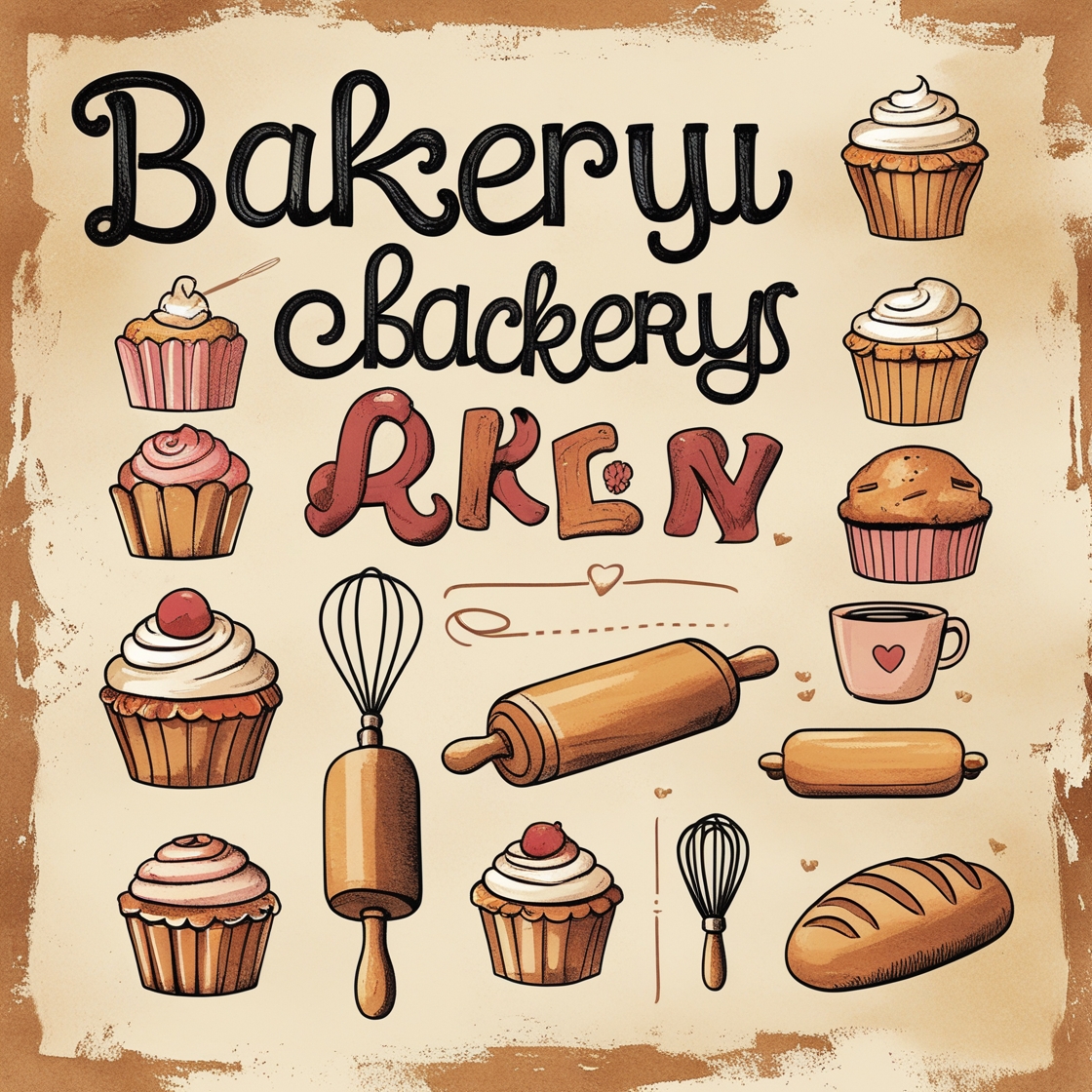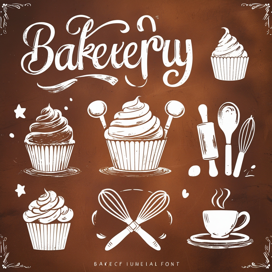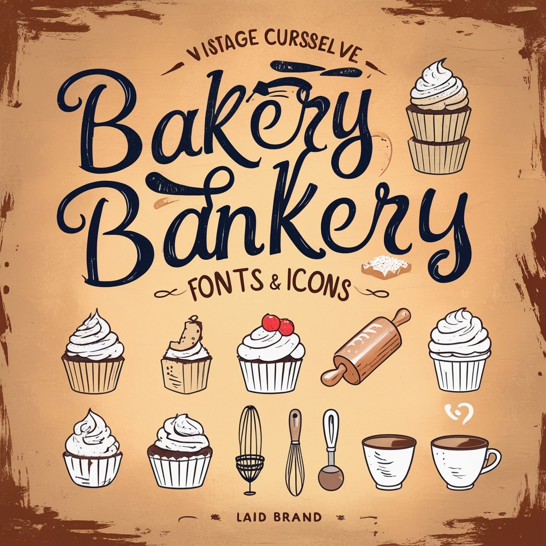 A unique collection of custom bakery-inspired fonts and hand-drawn icons, perfect for designing menus, packaging, and promotional materials.